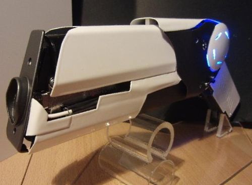 Дизайн устройства лично мне очень нравится — он очень похож на то, что авторы НФ рассказов и романов называют «лазерными пистолетами» или «бластерами». Конечно, пробить дыру в кирпичной стене такое оружие неспособно, но ведь технологии движутся вперед — глядишь, через пятилетку кто-то создаст портативный «бластер», который будет значительно превосходить эту разработку по мощности. Ах да, емкости аккумуляторов хватает на целых 50 выстрелов.