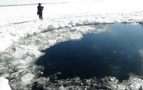 Диаметр воронки на месте предполагаемого падения одного из обломков метеорита на берегу озера Чебаркуль в Челябинской области составляет около шести метров. Между тем всего обнаружено три места падения обломков метеорита.