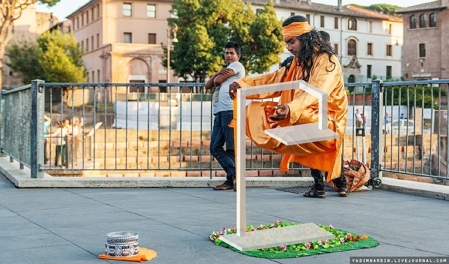 Пишет Вадим Нардин: “Прогуливаясь в Риме по оживленным туристическим улицам, я очень часто встречал левитирующих уличных типайогов.