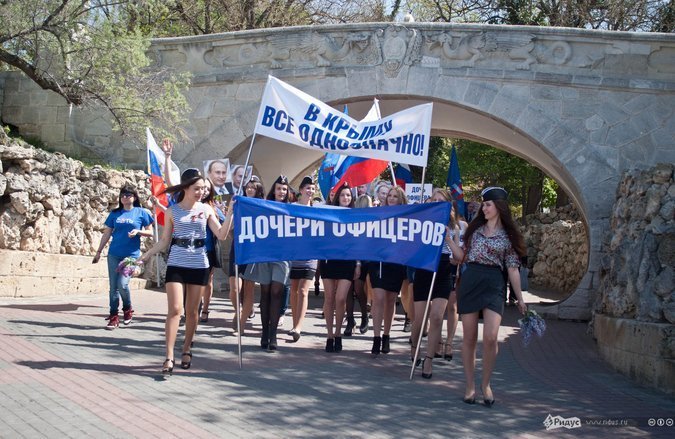 Ну, а на прошедшую в Севастополе акцию участниц мероприятия вероятно вдохновила прекрасная севастопольская погода. Девушки в тельняшках, юбках и на каблуках смотрелись очаровательно.