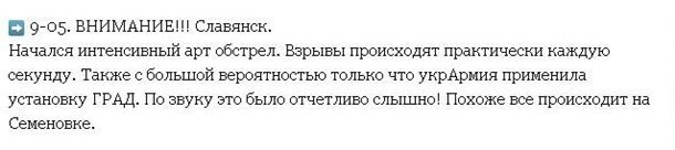 В соцсетях масса сообщений, что утром был начат минометный обстрел Славянска.