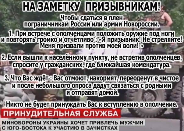 На заметку тем, кто хочет сдаться ополченцам.