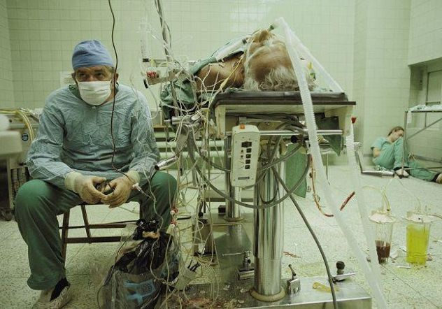 Кардиохирург Збигнев Релига, осуществивший операцию по трансплантации сердца, длившуюся 23 часа, стал главной фигурой этой фотографии, заслужившей награду от National Geographic. На снимке мы можем видеть врача и его ассистентку, отдыхающих после проделанной ими грандиозной по тем временам (1987 год) работы. Помимо несовершенства тогдашних технологий, система здравоохранения Польши в те времена претерпевала значительный дефицит бюджета, однако продолжала стремиться помочь всем нуждающимся.