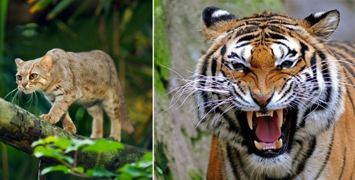 Когда-то эволюция решила, что видов животных одного и того же семейства должно быть много, но только по непонятным причинам одним природа дала смертельно опасные клыки и когти, а кому-то вручила мягкие пушистые лапки. Но тем не менее и те и другие успешно живут и радуются тому, чем одарила их природа. Предлагаем вашему вниманию сравнительную подборку животных одного и того же вида, но значительно отличающихся друг от друга размерами.