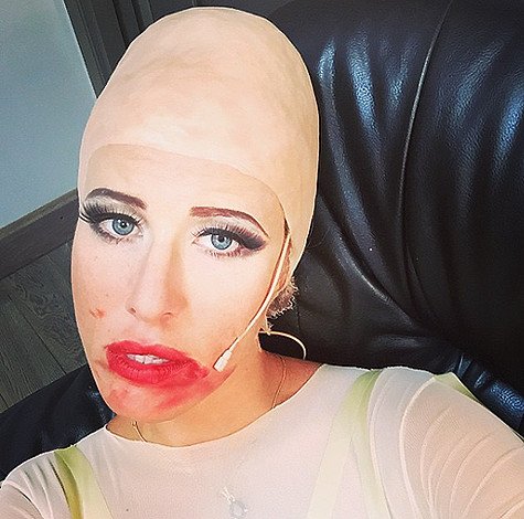Интересно, что Собчак сумела привлечь внимание публики к спектаклю, который сам режиссер назвал «токсичный кич», и через свой Instagram. Она опубликовала фотографию в гриме, которая шокировала поклонников. И вот вчера поздно вечером она снова выложила фото, от которой фанаты Ксении пришли в ужас. Костюм Собчак – облегающий и телесного цвета – создает впечатление, что она полностью обнажена, а специальная накладка на волосы – что она лысая.