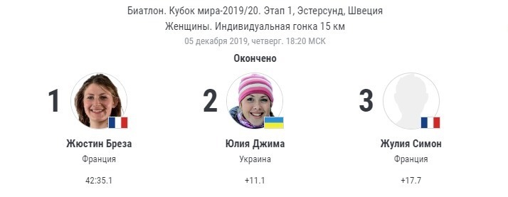 Биатлон Кубок мира: Женская индивидуальная гонка — 05.12.2019 смотреть результаты онлайн