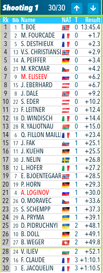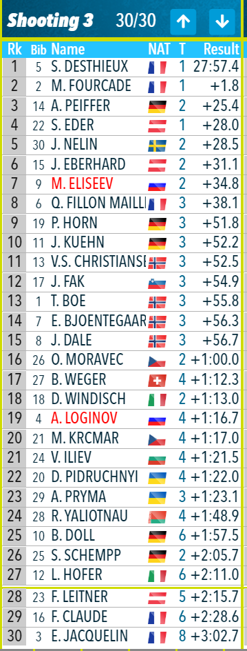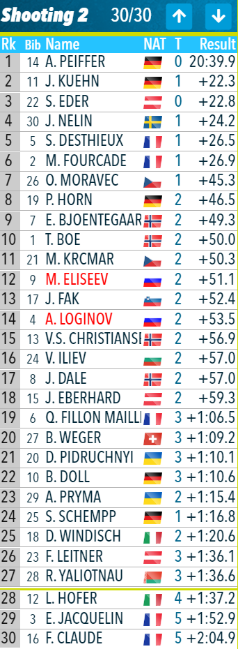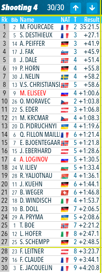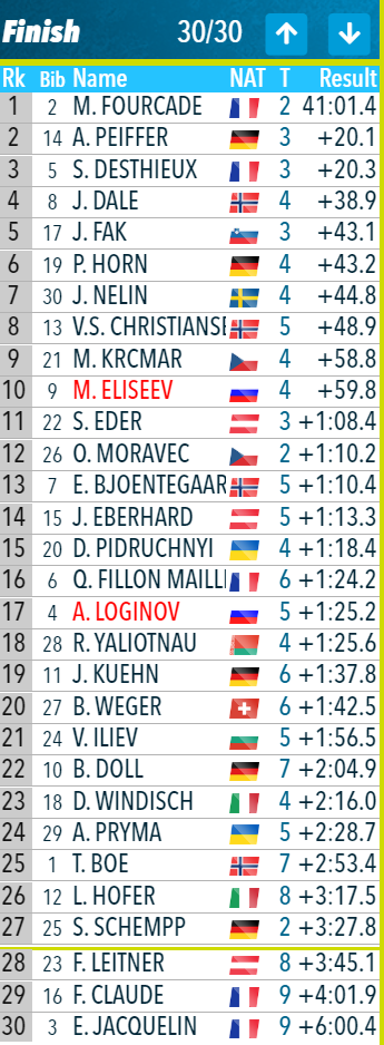 - Старт-лист мужского масс-старта в Оберхофе 12.01.2020