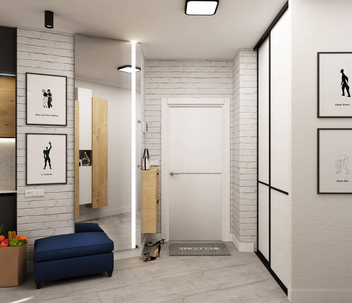 Иногда приходится сносить стены, если планировка квартиры не позволяет поставить в коридор никакую мебель. Сейчас считается популярным обустройство квартиры, где в одной комнате находится несколько функциональных участков – например, кухня и гостиная в одном помещении. Так же можно сделать и с прихожей.